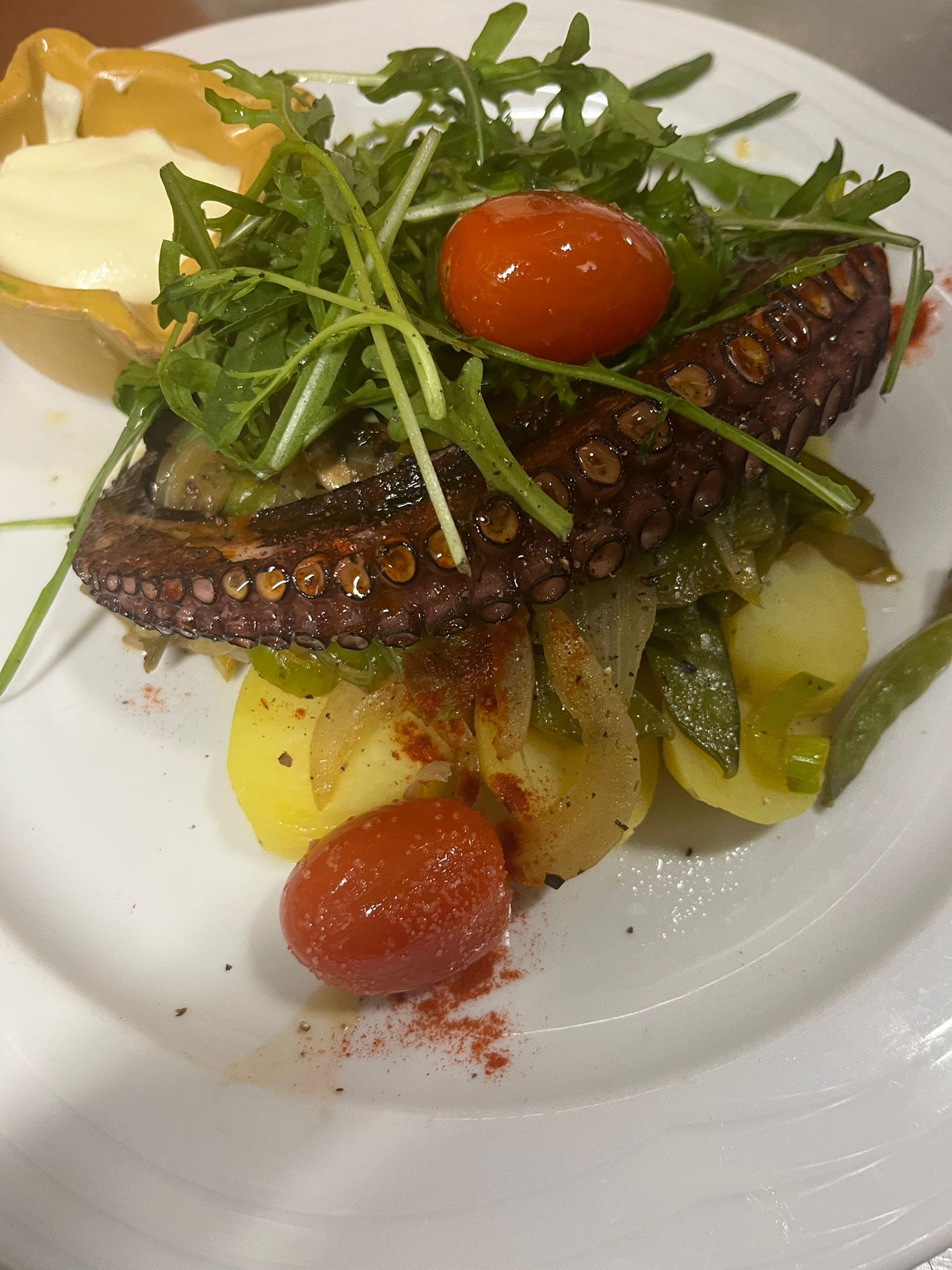 Cuisine goûteuse, pain maison, Pata Negra en apéro sublime, assiettes très généreuses et mets délicats (recettes locales, risottos, paëllas mixtes, pizzas, glaces artisanales, etc.).